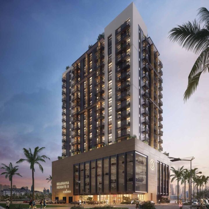 G+13 residential development featuring sophisticated studios, one, two and three bedroom apartments as well as two-storey two-bedroom private townhouses in Jumeirah Village Circle Dubai.